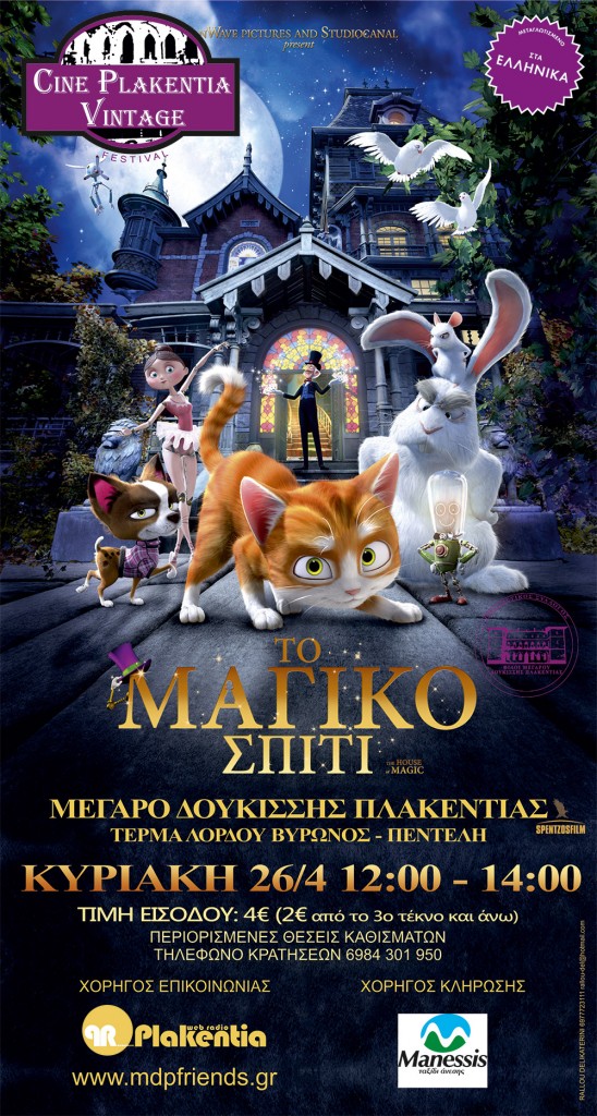 ΤαινίαΤο μαγικό σπίτι megaro plakentias / April 20, 2015 Η Thunder, μια εγκαταλελειμμένη νεαρή γάτα αναζητά καταφύγιο από την καταιγίδα, σκοντάφτει στο πιο παράξενο σπίτι που μπορεί να φανταστεί